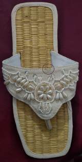 Wunderschöne, naturfarbene Zimt-Zehensandalen mit Perlen und Pailletten bestückt. Mit diesen edlen und eleganten Zimtschuhen machen Sie eine gute Figur! Die fußfreundlichen Zimt-Zehensandalen sind der ideale Schuh für den Freizeit- und Hausbereich. Die Sohlen sind teilweise aus geflochtenen Binsenhalmen, aufgebracht auf eine Laufsohle aus EVA. Das Fußbett ist gefüllt mit natürlichem Zimtpulver und sorgt für angenehmen Tragekomfort. Die Halteriemen der Zimtl-Zehensandalen bestehen aus weicher Baumwolle.
