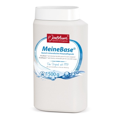 Meine Base das Original seit 1993! Meine Base von P. Jentschura ist äußerst sparsam in der Anwendung. Für ein Vollbad benötigen Sie drei und für ein Sitzbad einen gehäuften Eßlöffel Meine Base Badesalz. Jeweils ein gehäufter Teelöffel Meine Base ist ausreichend für Salzwickel, -spülungen und Fußbäder. Meine Base basisch-mineralisches Badesalz enthält jetzt die wertvollen acht Edelsteine Achat, Karneol, Citrin, Chrysopras, Chalcadon, Saphir, Bergkristall und Onyx in feinster Pulvermahlung. Mit praktischem Bajonettverschluss, der gleichzeitig als Dosierhilfe genutzt werden kann.